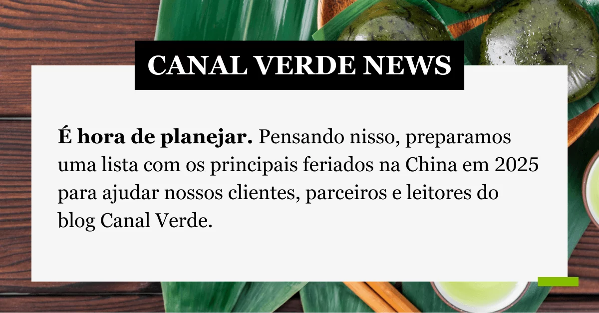 É hora de planejar. Pensando nisso, preparamos uma lista com os principais feriados na China em 2025 para ajudar nossos clientes, parceiros e leitores do blog Canal Verde.