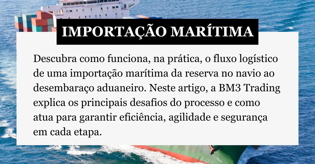 Neste artigo, vamos explicar, de forma direta e acessível, como funciona o fluxo logístico de uma importação marítima, da origem até a chegada ao seu destino no Brasil. Nosso objetivo é descomplicar o tema e mostrar onde a BM3 trading atua para garantir eficiência e segurança.