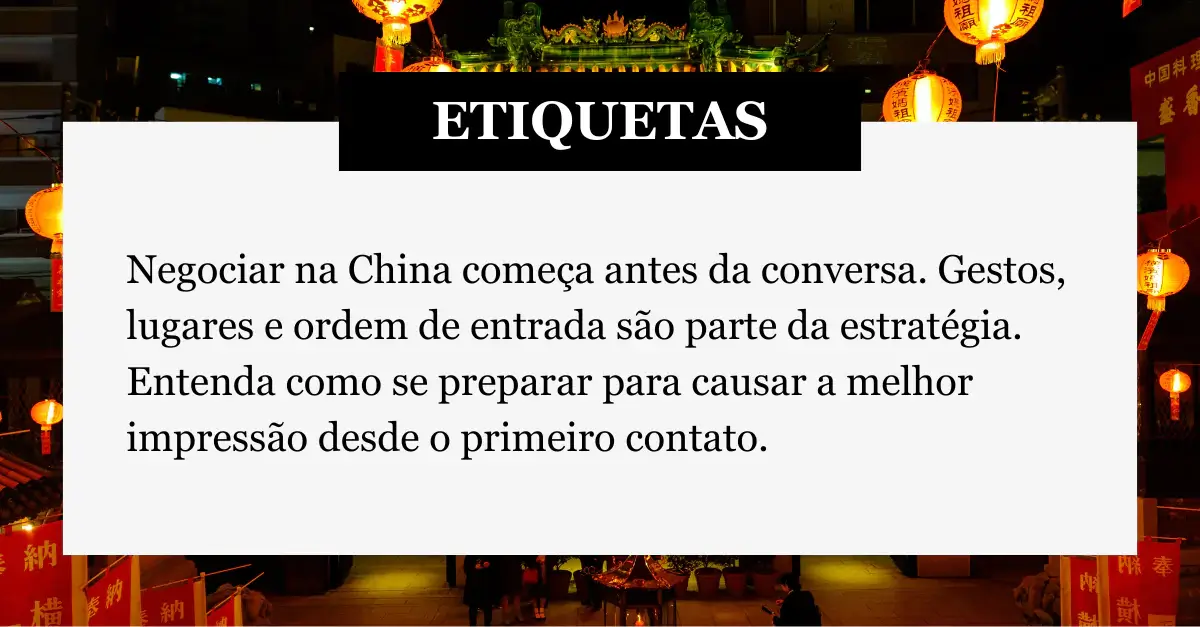 “Na China, o posicionamento e a sequência dizem tanto quanto as palavras. Mostrar quem lidera é parte da comunicação não verbal que estrutura toda a negociação.”