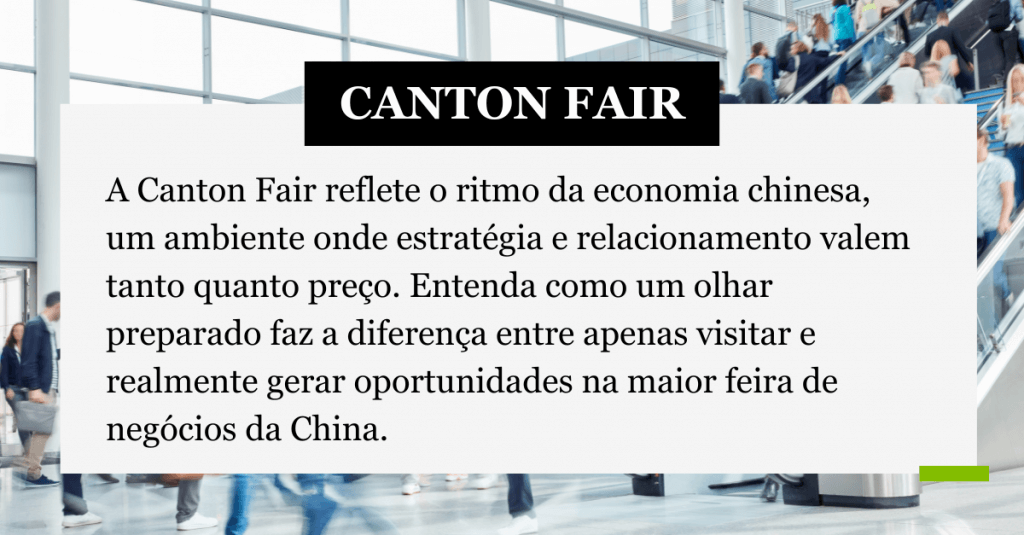 Percorrer os corredores da Canton Fair sem direção é fácil. O desafio está em transformar cada estande em um ponto de observação estratégica — onde as vitrines dão lugar a oportunidades reais de negócio.